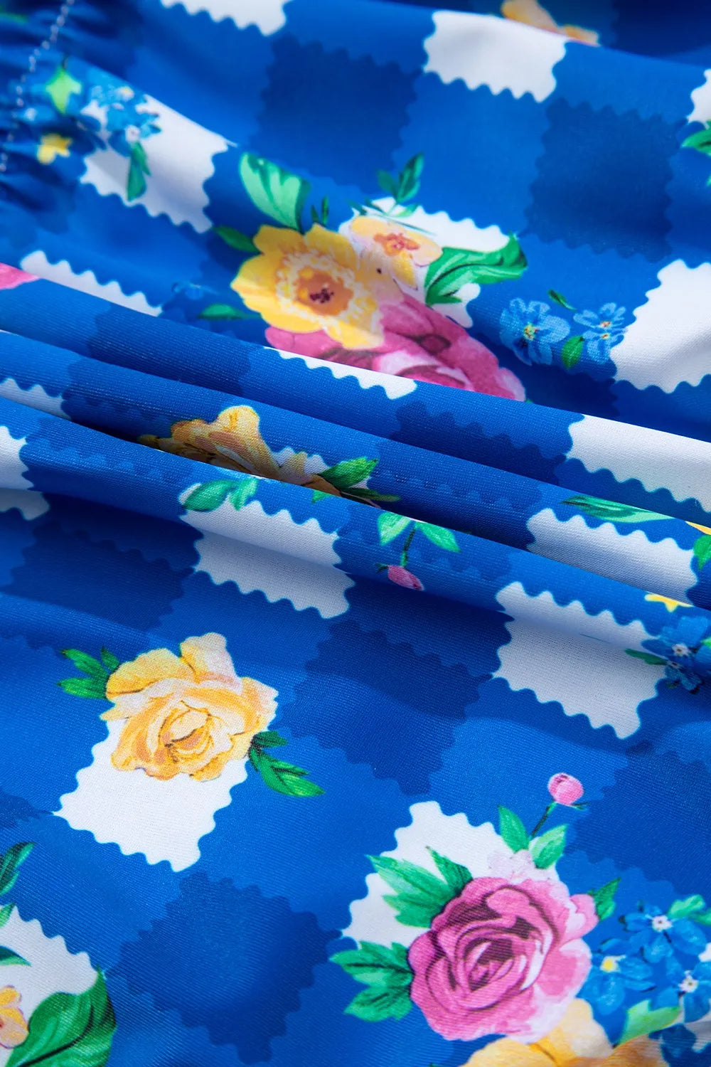 Цялостни бански костюми с флорални мотиви и връзки за деколте