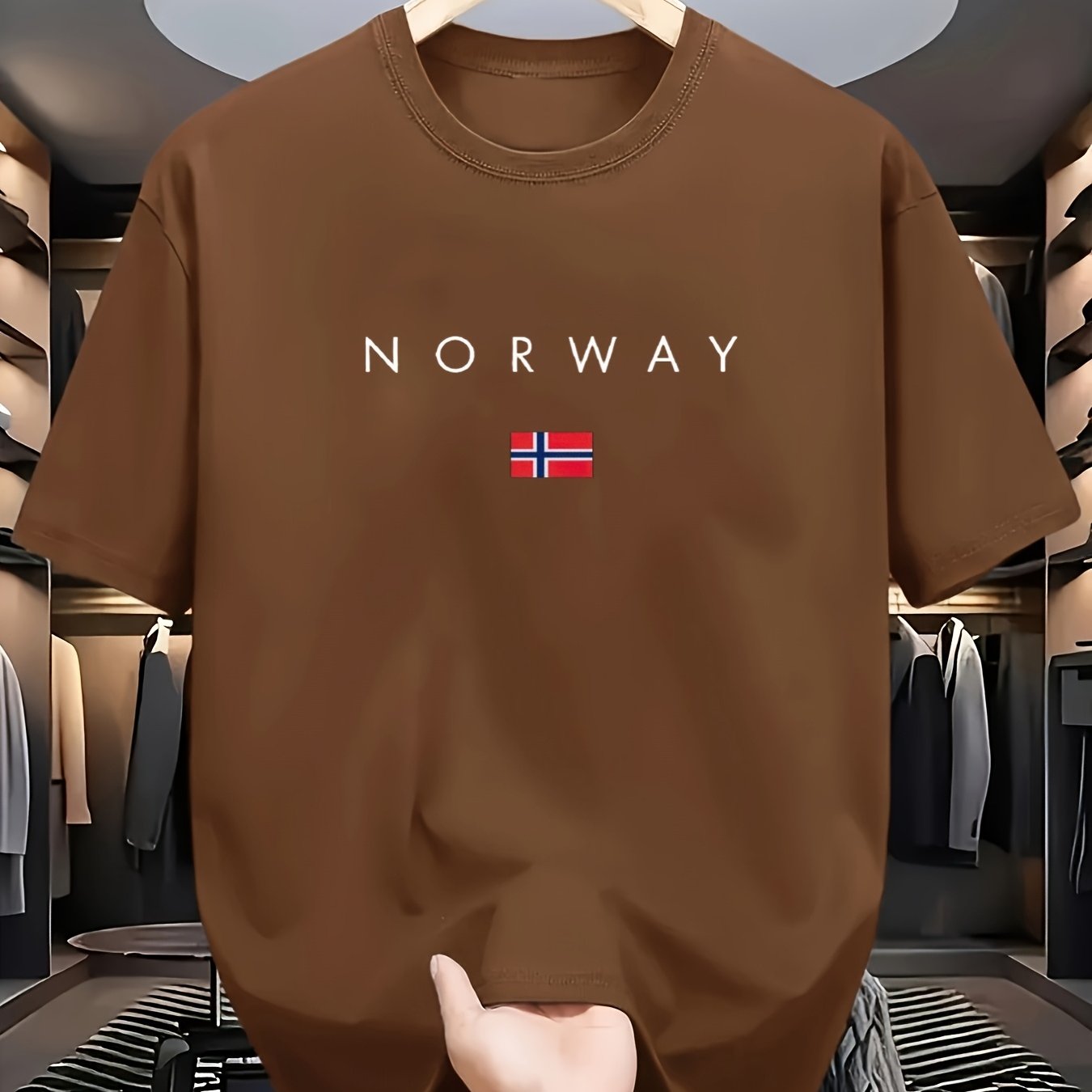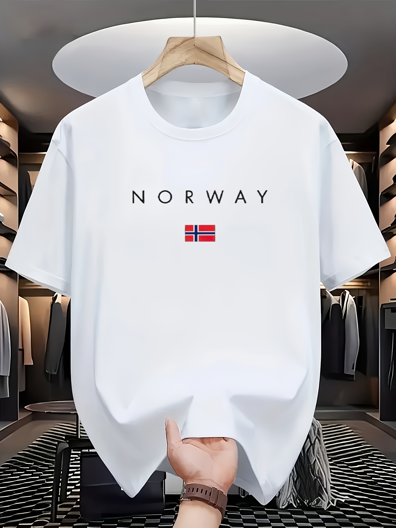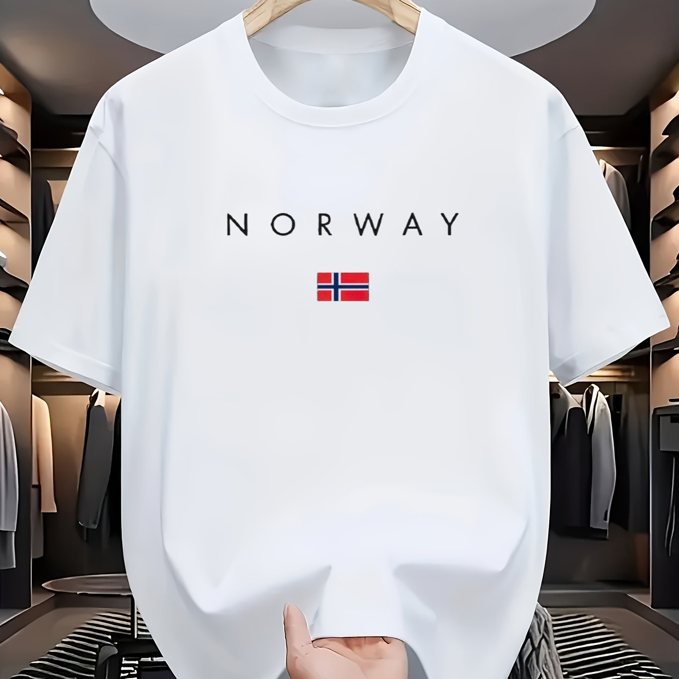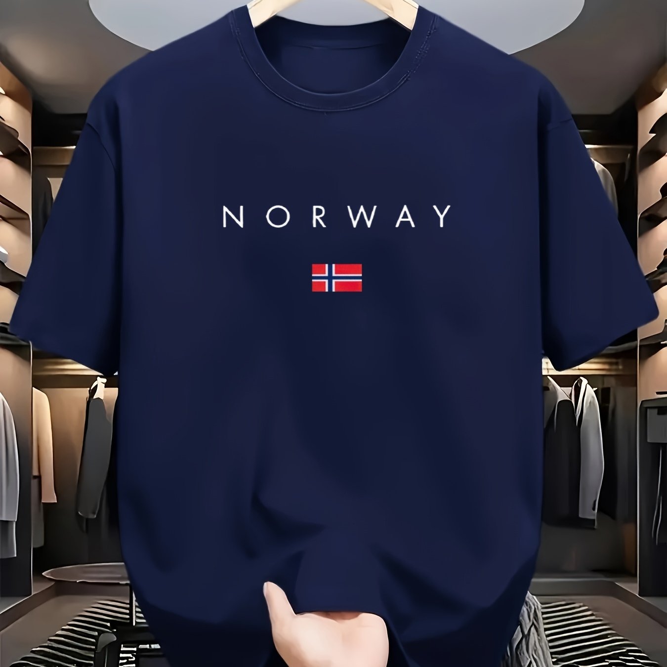 Мъжка ежедневна тениска, изработена от 100% памук с графичен принт на Норвегия, идеална както за спортни, така и за ежедневни поводи, с дизайн с кръгло деколте, идеален за лятно носене, подходящ за ежедневието и уикенда.