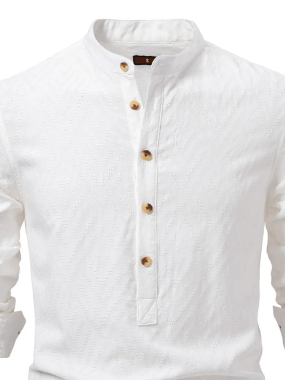 Мъжка риза с яка и геометрична текстура с половин копчета