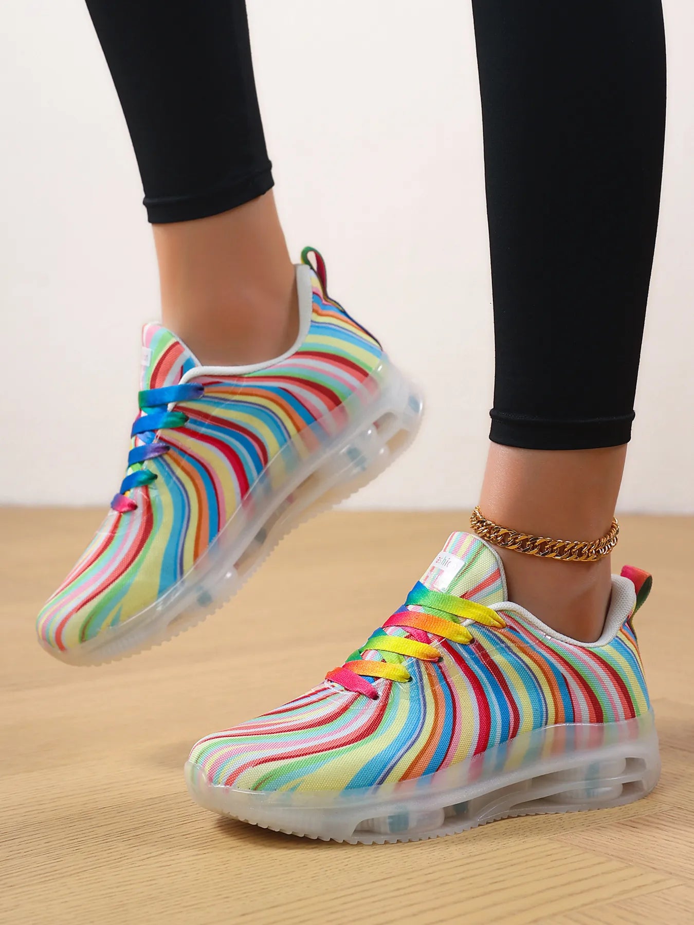 Спортни обувки с връзки Rainbow Swirl и прозрачна подметка